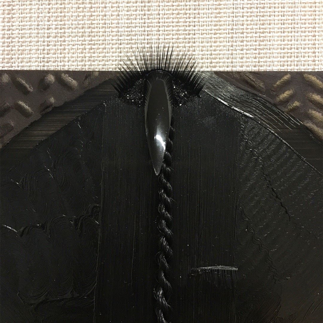 Planet G (Grief)Acrylic Paint, Pumice, Synthetic Hair and False Eyelashes on Panel
